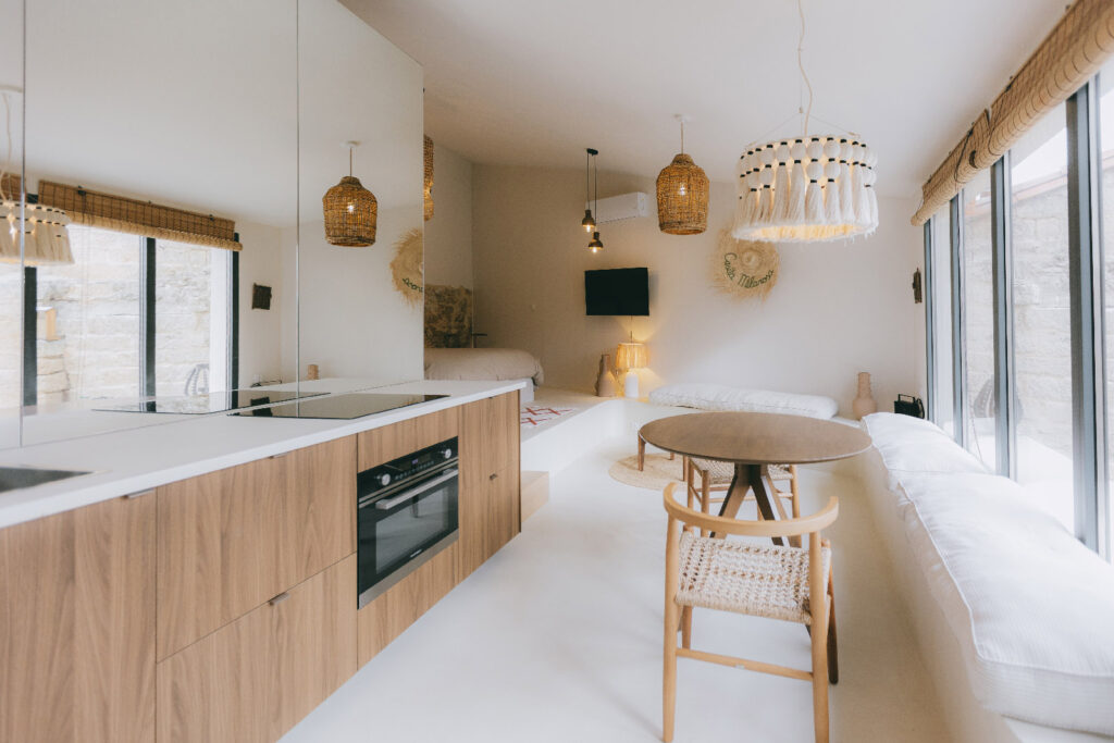 L’espace intérieur est conçu comme un volume fluide et lisible, structuré par la lumière et les usages.